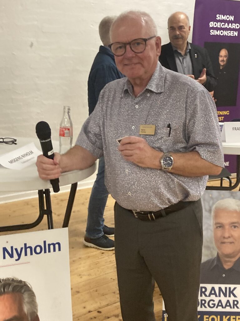 I aftes deltog Mogens i et vælgermøde på Tradium arrangeret af Rotary. Mødet blev professionelt ledet af Bjarne Hvirring, tidligere chefredaktør på Randers Amtsavis. Bjarne kan stadig sit håndværk, smil.