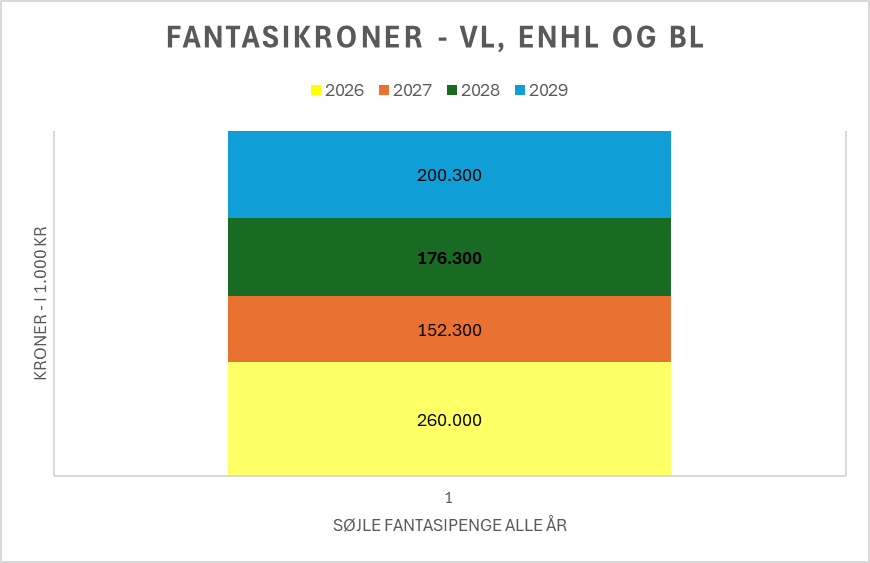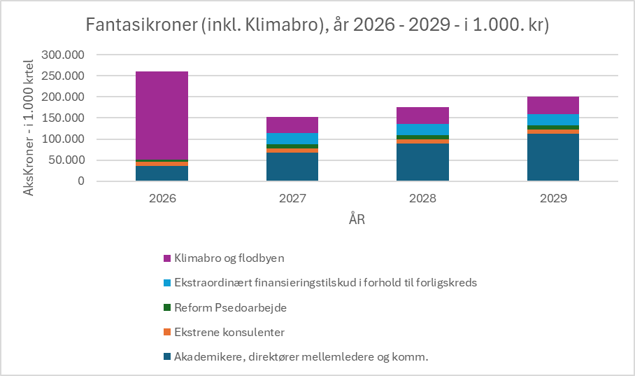 Venstrefløjens budget 2026 – 2029 indeholder 788 mio kroner, der må benævnes som fantasipenge. Forligskredsen S, RV, SF og tre løsgængere har, som redegjort under Østbro analysen i alt 4.8 mio kroner der flugter fantasipenge definition. Altså en forskel på ca. 783 millioner kroner; hvilket svarer til forligskredsens brug af fantasikroner udgør o,6% af venstrefløjens. Tankevækkende stor forskel… hvis man befinder sig i den virkelige verden, som vi er mange der gør.