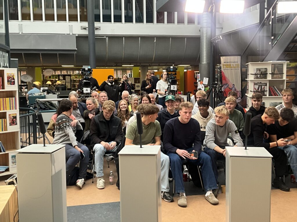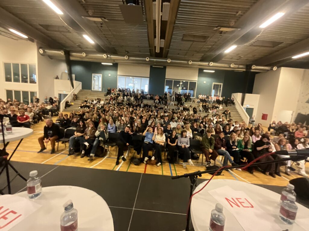 Nedenstående ses et par skud fra onsdagens vælgermødet på henholdsvis statsskolen og TV 2 Østjyllands.